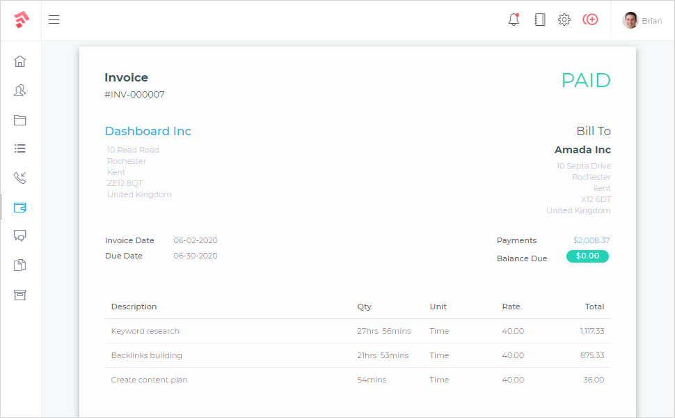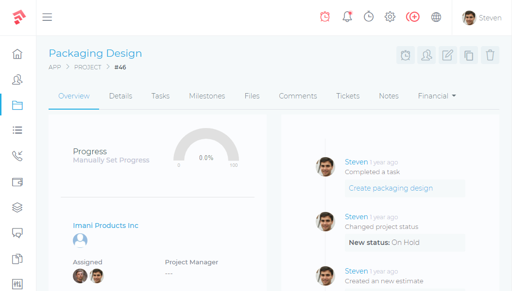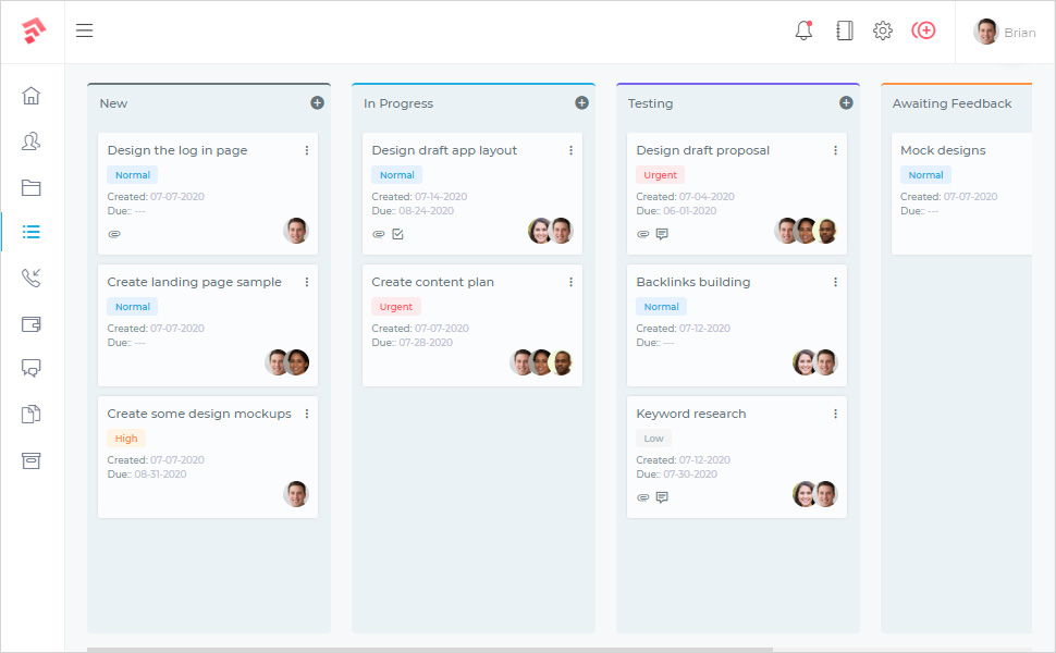 Nuestro CRM te brinda las herramientas adecuadas para gestionar, colaborar y completar tus proyectos a tiempo. Tus clientes y tu equipo estarán satisfechos.- Ve fácilmente el progreso de tu proyecto